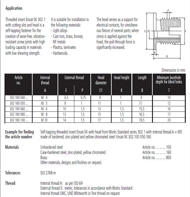 302-1型自攻丽江丝套是一种新型的紧固件,使用后能够加强螺纹强度。产品有内外牙,将其嵌入塑料,铝合金,铸铁,铜等较软材料内,形成的内螺纹孔就可以具有较高的强度。